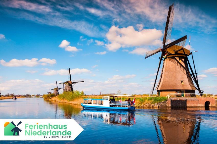 Zu den bekanntesten gehören die Windmühlen von Kinderdijk in Zuidholland, das Wattenmeer im Norden und die Grachten von Amsterdam.