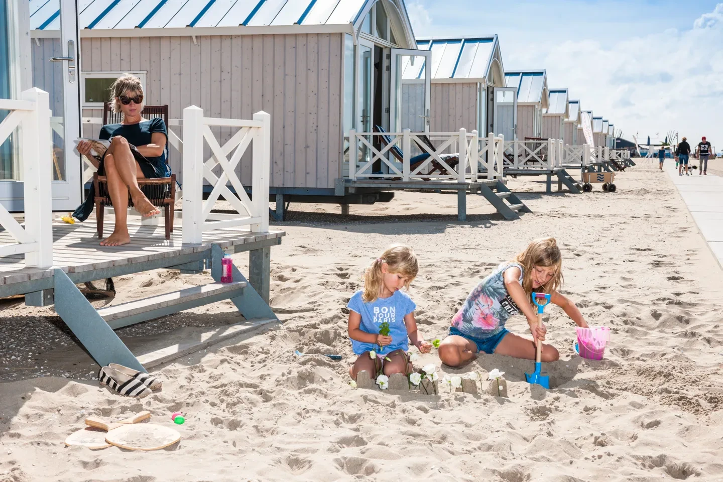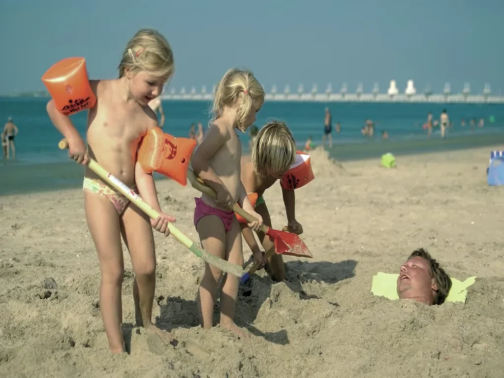 Am Strand angekommen, haben die Kinder sofort etwas zu tun: Muscheln suchen, kleine Wassergräben bauen oder dem Drachen beim Fliegen zusehen. Da Ihr Haus ganz in der Nähe ist, können Sie für das Mittagessen einfach zurücklaufen. Alternativ suchen Sie sich einen der gemütlichen Strandpavillons aus, die überall an der niederländischen Küste zu finden sind. Hier sitzen Sie entspannt bei einem Kaffee, während die Kinder im Sand spielen, der oft bis direkt an die Terrasse der Restaurants reicht. Abends kehren Sie mit sandigen Füßen, aber glücklich in Ihr Haus zurück.